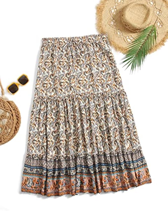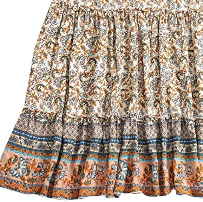 • 女款 波西米亞風復古印花長裙,必備的裙子和夏季的絕佳裙子禮物點子;休閒合身,只需輕鬆享受休閒時光。